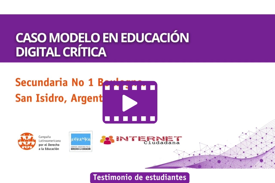 La Campaña Latinoamericana por el Derecho a la Educación (CLADE), la Campaña Argentina por el Derecho a la Educación (CADE), con la participación de la Federación Argentina de Instituciones de Ciegos y Ambliopes (FAICA), Comuna Digital y el apoyo de Internet Ciudadana, implementaron un caso modelo de educación digital crítica en la Escuela Secundaria N°1 de Boulogne, localizada en la Provincia de Buenos Aires, Argentina. Durante cuatro encuentros entre julio y septiembre de 2025, docentes y estudiantes exploraron herramientas digitales libres, reflexionaron sobre el uso de datos y experimentaron con producción de contenidos en audio y video. Con el objetivo principal de ofrecer un modelo replicable que pueda inspirar políticas públicas en educación digital crítica.