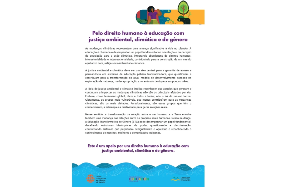 Posicionamento: Pelo direito humano à educação com justiça ambiental, climática e de gênero